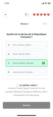 Culture Express est une application de quiz ludique et pédagogique pour tester et enrichir vos connaissances sur la culture française. Idéale pour les curieux, les passionnés d’histoire et de géographie, ou les candidats à la naturalisation, elle vous aide à vous préparer efficacement à l’entretien en explorant les grands thèmes de la France : institutions, gastronomie, patrimoine, Histoire, valeurs républicaines et plus encore.