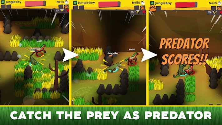 Play in multiple rounds as predator and use your stealth ability to catch the prey, or use your quickness and agility to avoid being captured as a prey. Win by filling your belly with grass from the great savanna.